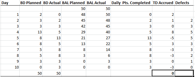 Here’s the data for all of the Burn Down Charts: